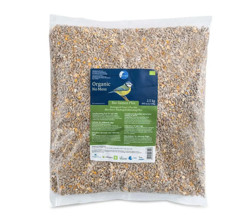 Dit vogelvoer bestaat uit 100% biologische ingrediënten. Dit betekent dat er bij de teelt geen gebruik is gemaakt van kunstmest of bestrijdingsmiddelen. Biologisch geteelde producten zijn puur en van de hoogste kwaliteit. Daardoor krijgen vogels met elke hap direct de juiste voedingstoffen binnen. Ze hebben hiervan minder nodig dan van regulier vogelvoer, om toch dezelfde energieboost te krijgen. Naast dat dit tijd scheelt en ze daarmee minder gevaar lopen, is het ook gezonder.